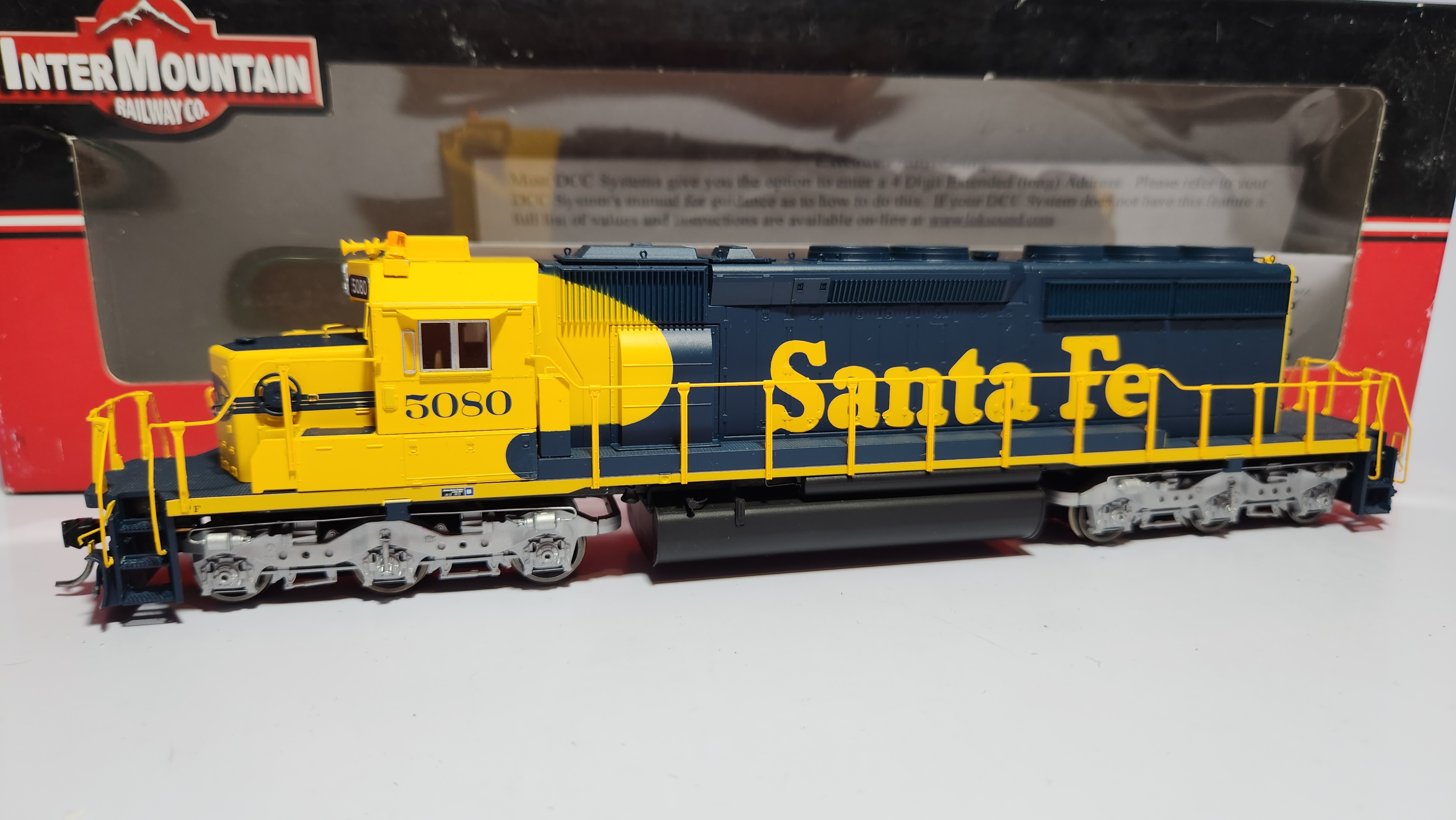 IntermountainEscala HOSerie Intermountain EstándarSanta Fe, esquema NormalPintura: De fábricaArtículo SeminuevoRoad # : 5080Sistema : Dual con Sonido