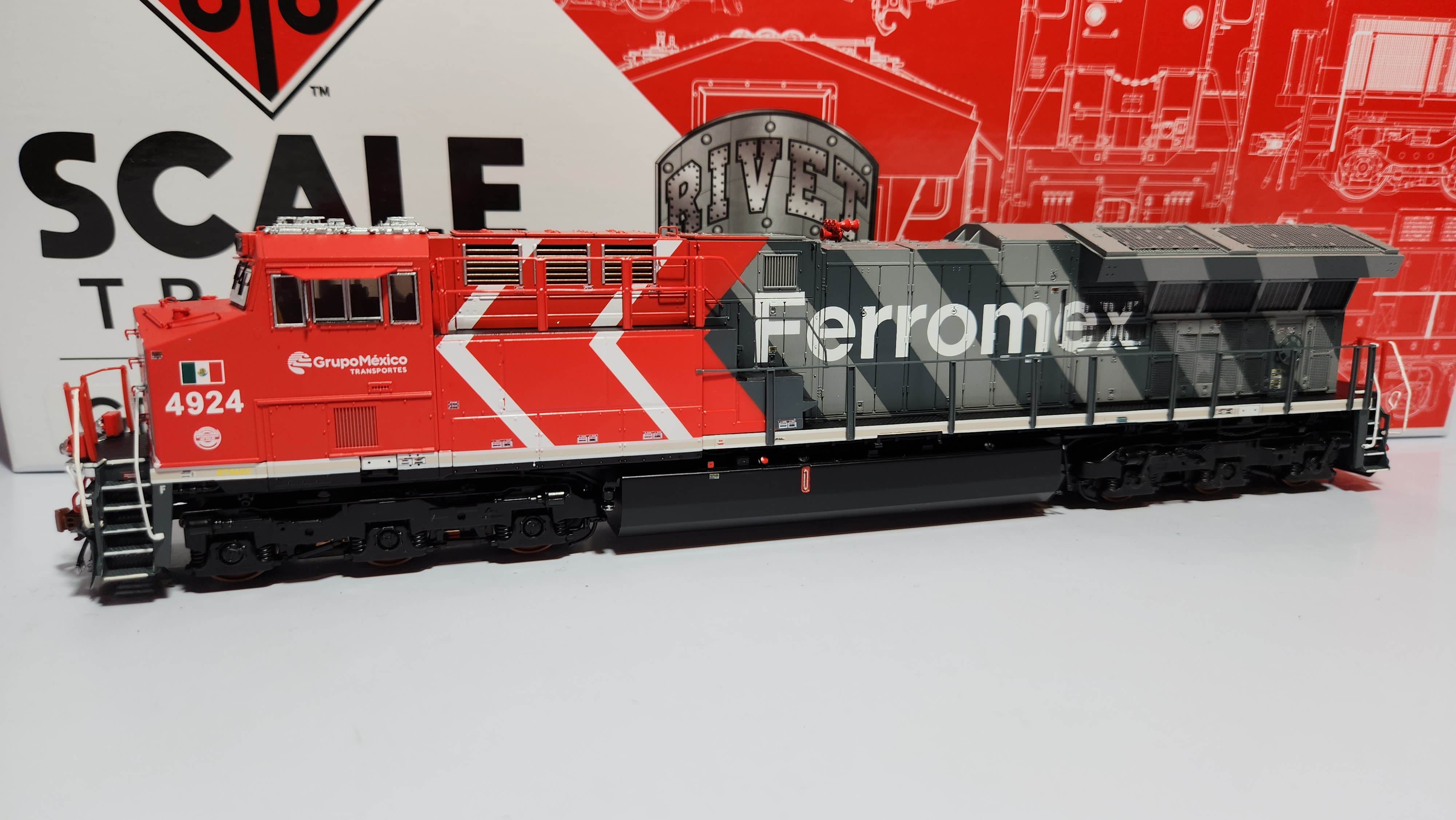 • Giran rodamientos, tiene luces direccionales en farolas y regueras delanteras, asi como parrillas y escalones de fotocortado, grab irons, mangueras, cables, cadenas, barras desacopladoras, tuberias y limpiadores instalados de fabrica. Las luces de piso (arriba del truck), de pasillos y numeros luminosos estan instaladas pero solo funcionan si se instala decodificador DCC. Version "Hypotypical""