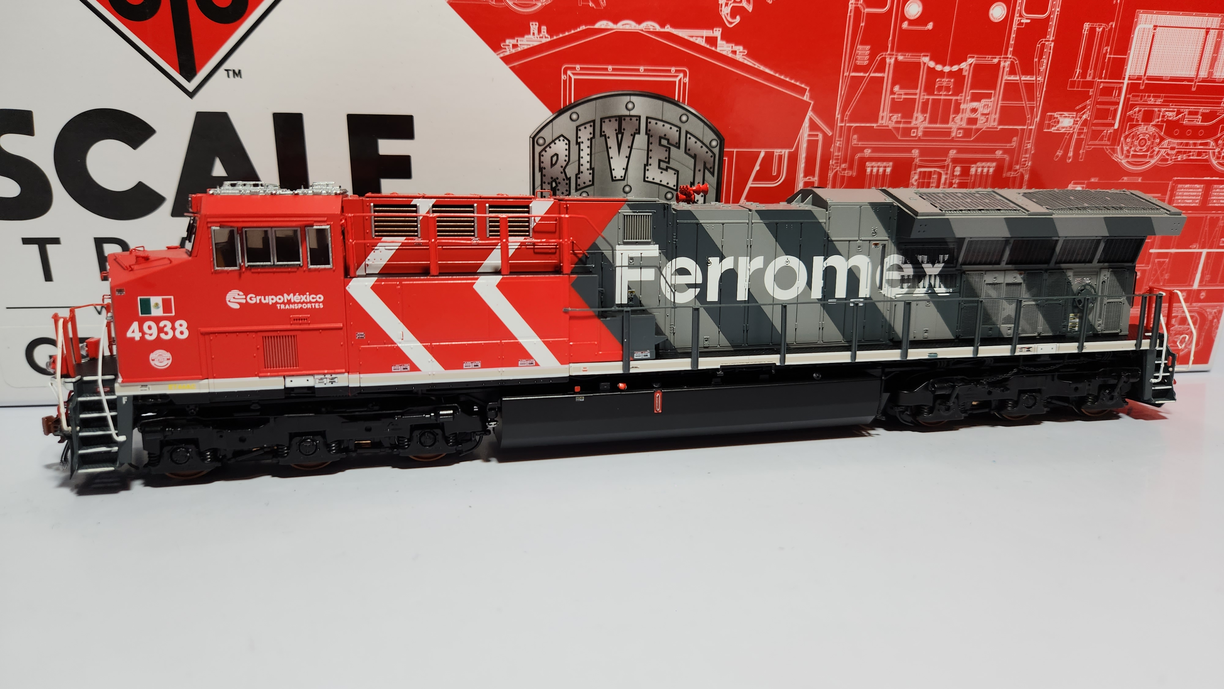 • Giran rodamientos, tiene luces direccionales en farolas y regueras delanteras, asi como parrillas y escalones de fotocortado, grab irons, mangueras, cables, cadenas, barras desacopladoras, tuberias y limpiadores instalados de fabrica. Las luces de piso (arriba del truck), de pasillos y numeros luminosos estan instaladas pero solo funcionan si se instala decodificador DCC. Version "Hypotypical""