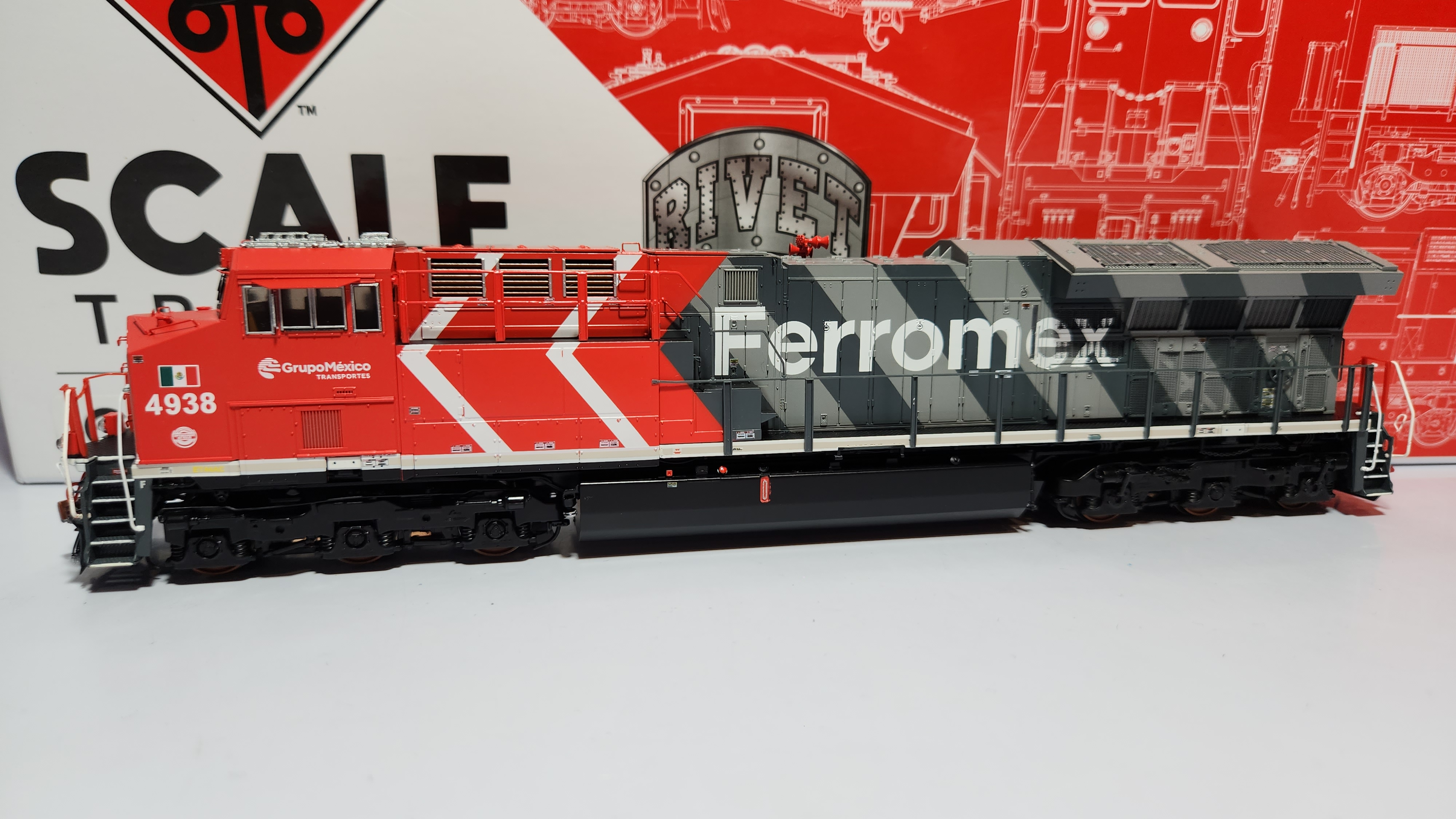 • Giran rodamientos, tiene luces direccionales en farolas y regueras delanteras, asi como parrillas y escalones de fotocortado, grab irons, mangueras, cables, cadenas, barras desacopladoras, tuberias y limpiadores instalados de fabrica. Las luces de piso (arriba del truck), de pasillos y numeros luminosos estan instaladas pero solo funcionan si se instala decodificador DCC. Version "Hypotypical""